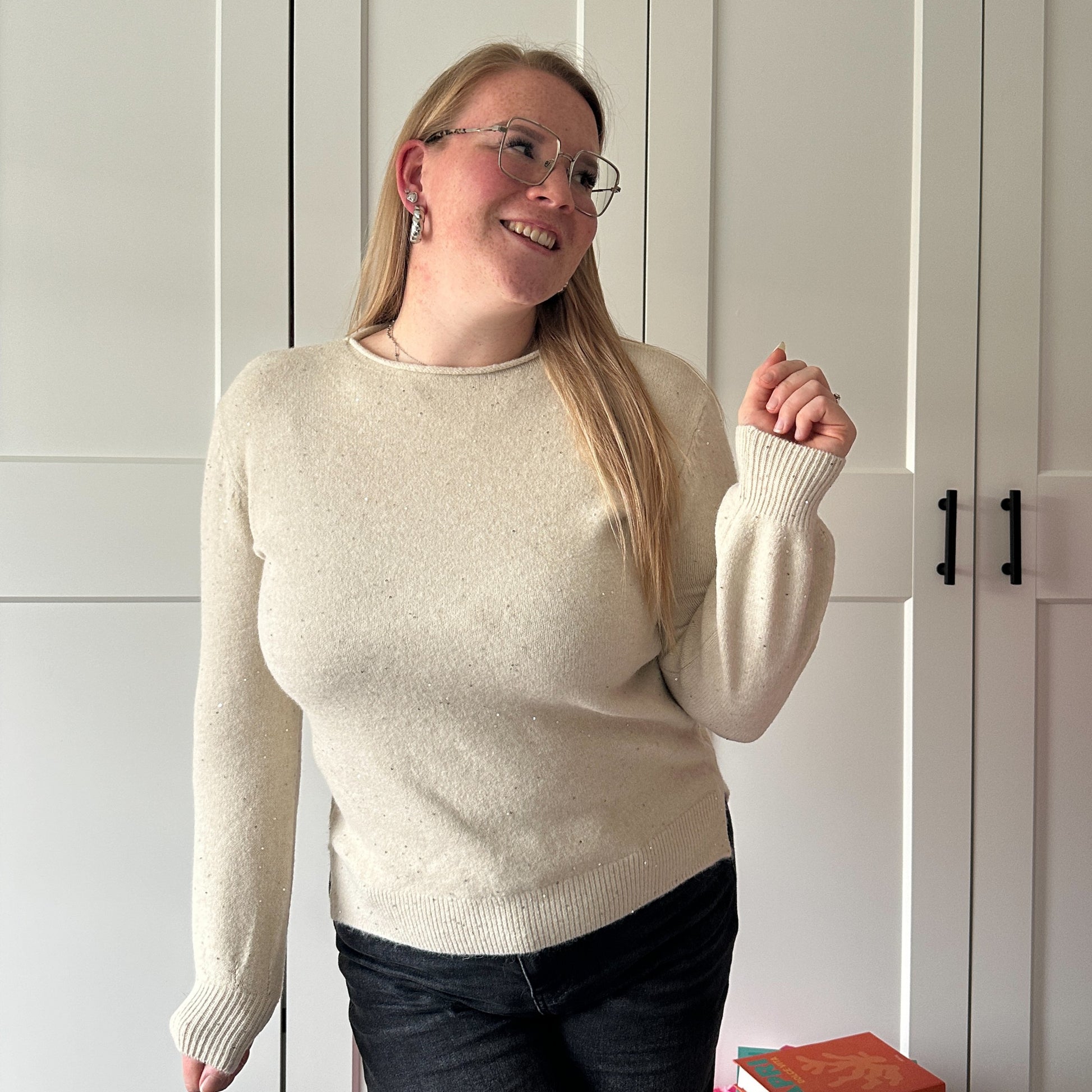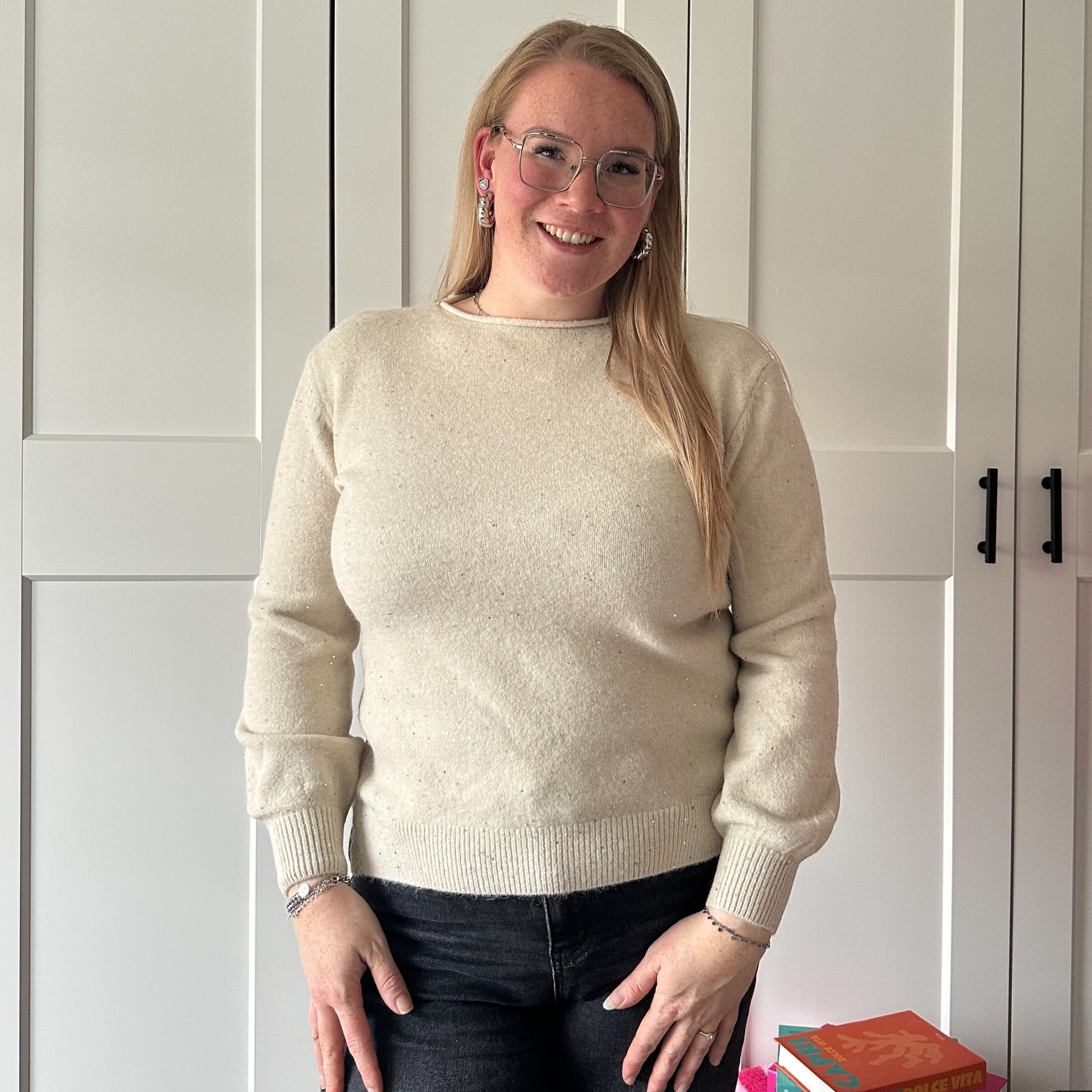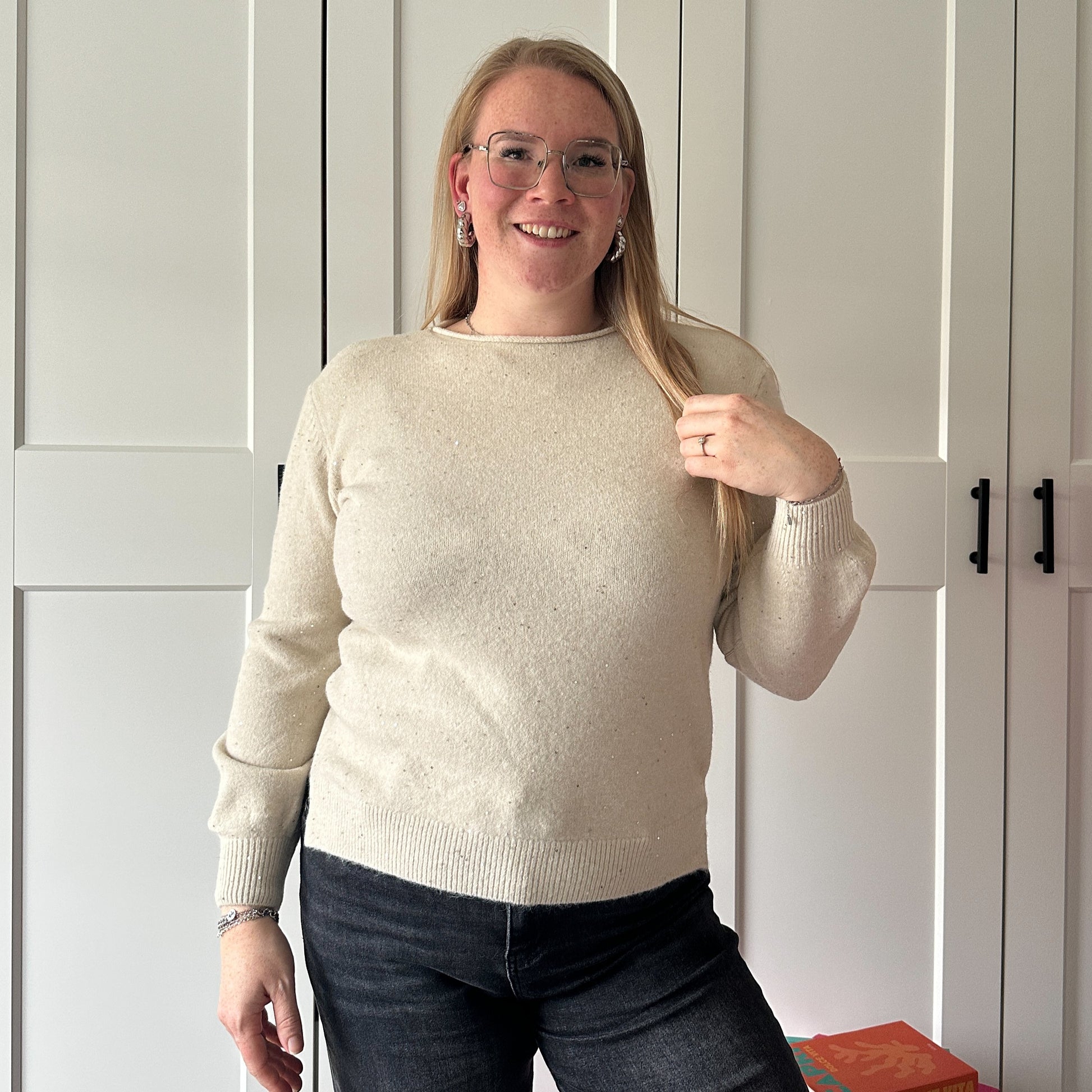 Een tintje glitter in je trui - We LOVE it! De trui is lekker zacht & kriebelt niet. Ook verkrijgbaar in het cremé.